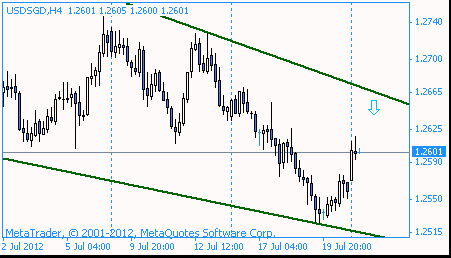 На четырехчасовом графике пара USD/SGD торгуется в нисходящем канале: