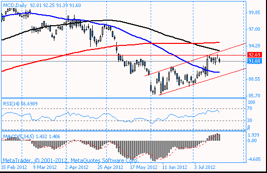 Если акции MCD смогут преодолеть данную поддержку и закрепится ниже уровня $89,00, целью снижения станет область июньского минимума $86,00.