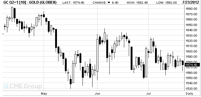 Августовский фьючерс на золото на COMEX сегодня снизился на $ 8,2 и сейчас находится на уровне 1574,6 доллара за унцию.