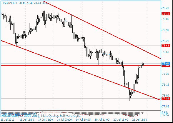 Пара USD/JPY выросла, и приближается к линии сопротивления, построенной от 12 и 18 июля. Ожидается, что данный уровень сможет удержать цену от дальнейшего восходящего движения.