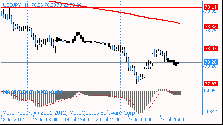 Евро торгуется вблизи 11-летнего минимума по отношению к иене на фоне долгового кризиса в Европе, который приводит к экономическому спаду в регионе. Также давление на евро оказал рекордный рост доходности испанских и итальянских облигации, и заявление управляющего одним из крупнейших хедж-фондов мира, инвестора Джона Полсона, о том что вероятность развала еврозоны, по его мнению, составляет порядка 50%. В понедельник стоимость заимствований для Испании достигла самого высокого уровня со времен введения евро: в какой-то момент доходность по 10-летним облигациям Испании поднялась до 7,59%. Кроме того, есть опасения, что увеличится число испанских регионов, которым требуется помощь со стороны центрального правительства. В связи с этим усиливаются опасения относительно того, что помощи испанскому банковскому сектору, договоренность о которой была достигнута в прошлом месяце, может оказаться недостаточно, чтобы сдержать долговой кризис.