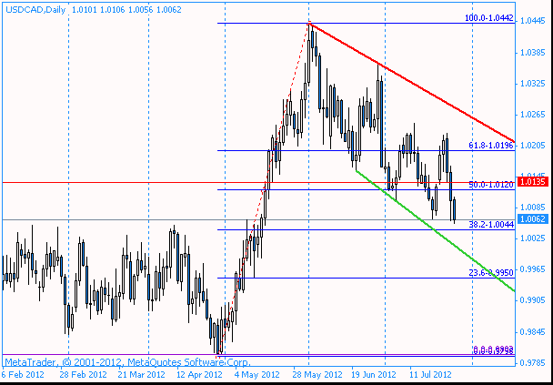 Пара USD/CAD снизилась, обновив при этом минимум 16 мая. Ожидается, что снижение может продолжится до линии поддержки, построенной от 20 июня и 5 июля.