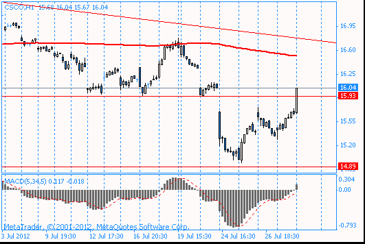 Акции Cisco Systems (CSCO) выросли на +2.20% и являются лидером в составе индекса Dow.