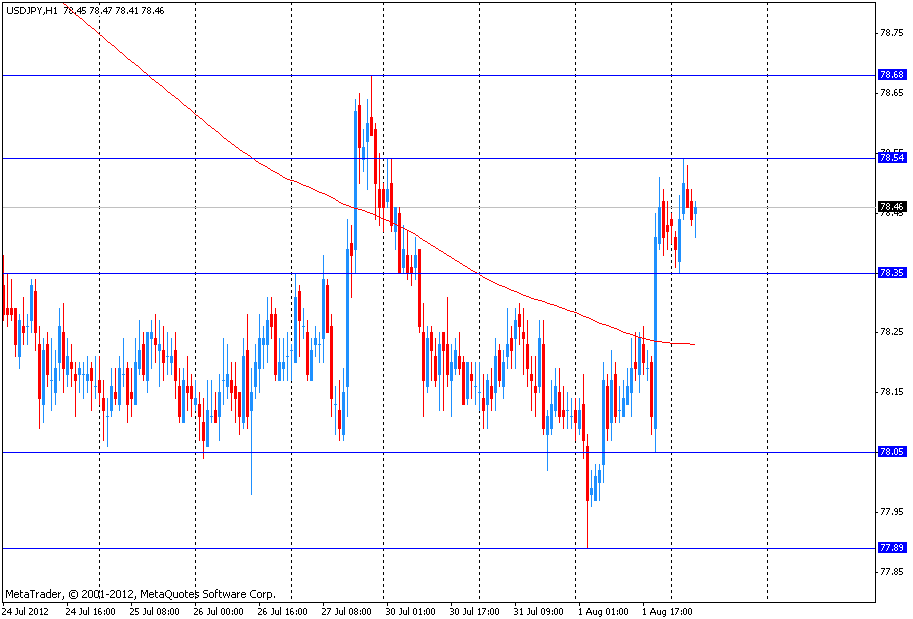 Доллар США торговался с повышением против японской иены, после того как Федеральная резервная система США в среду воздержалась от новых мер смягчения денежно-кредитной политики. Доллар стали покупать после того, как ФРС не стала объявлять о новом этапе покупок облигаций и не предприняла никаких иных мер. Тем не менее, центральный банк США просигнализировал об ухудшении перспектив экономического роста и заявил о том, что готов предпринять новые шаги, если нужно будет поддержать экономику. Также Федеральная резервная система приняла решение сохранить ключевую учетную ставку в диапазоне 0-0,25% годовых. Данное решение прогнозировалось большинством аналитиков. За сохранение сверхмягкой денежно-кредитной политики проголосовали 9 из 10 членов FOMC. Против выступил президент Федерального резервного банка Ричмонда Джеффри Лэкер, который не видит необходимости удерживать ставки на минимальном уровне в течение столь длительного периода.
