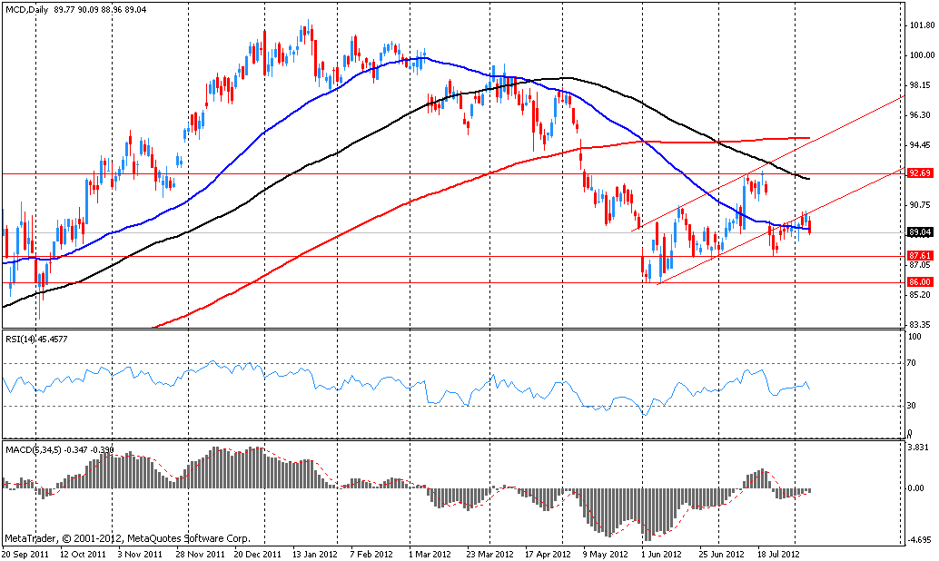 Акции MCD на премаркете упали до уровня $86.11 (-3.26%), найдя поддержку в области минимумов июня.