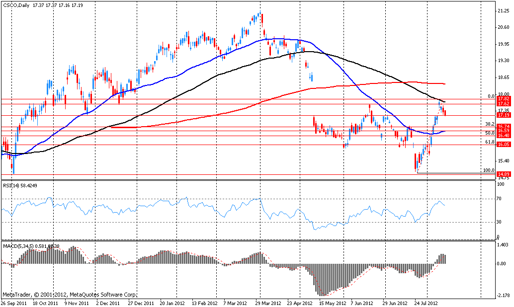 В данный момент акции торгуются в области поддержки $17,20 (ранее сопротивление, область максимумов июля).