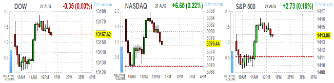 В фокусе участников рынка находится экономический симпозиум в Джексон Хоуле, который начнется позже на текущей неделе. Особенно участники рынка ожидают выступления на данном ежегодном мероприятии Бена Бернанке, главы ФРС, которую он произнесет в пятницу, 31 августа.
