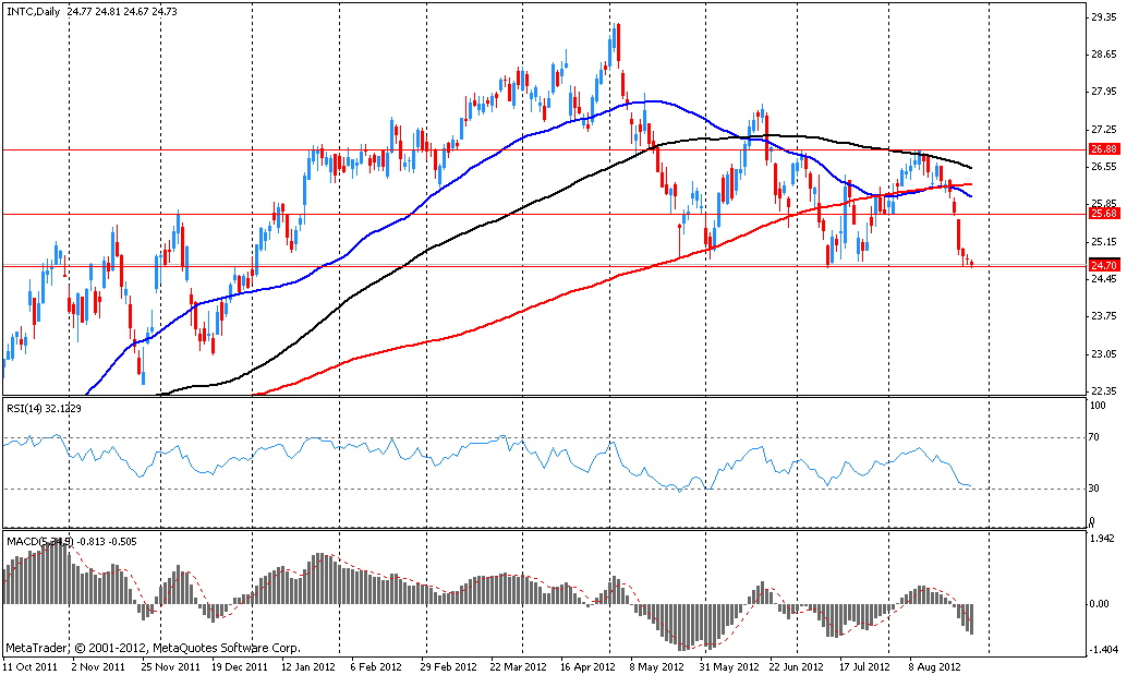 В данный момент акции INTC торгуются по $24.74 (-0.40%), упав за последние две недели более чем на 8%.