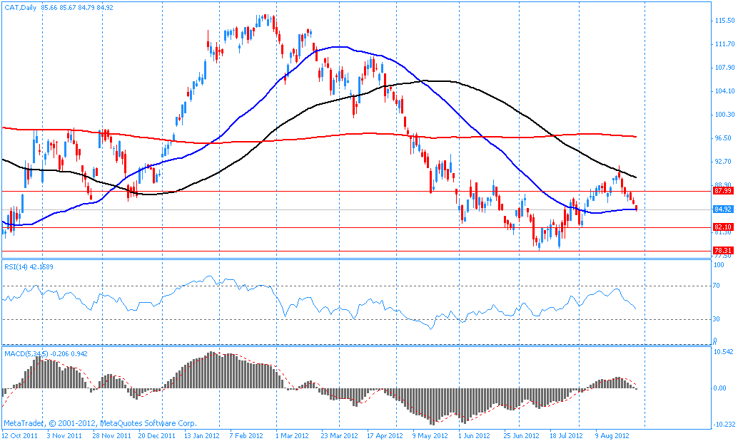 Акции Caterpillar (CAT) в начале сессии несут максимальные потери в составе индекса Dow
