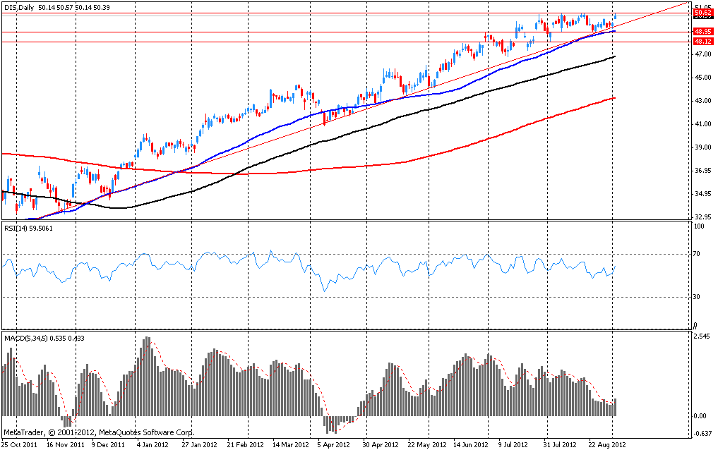 В данный момент акции DIS торгуются по $50.44 +1.59%. Исторический максимум расположен на $50,62.