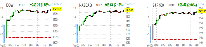 По итогам торгов индексы существенно выросли, при этом индексы S&P и Nasdaq обновили максимумы 2012 года, достигнув 4-х летних максимумов.