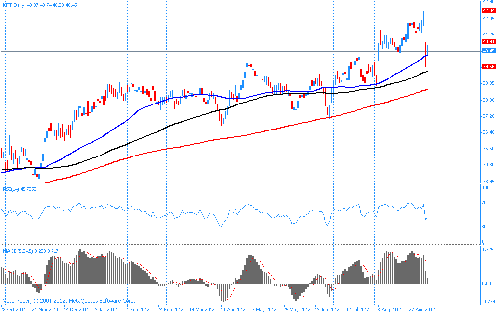 В данный момент акции KFT торгуются по $40.45 (+1.19%).
