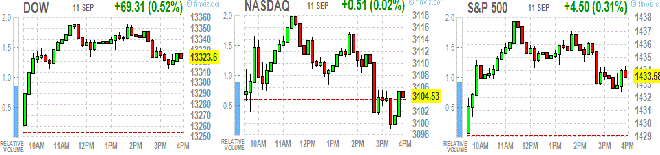 На момент закрытия:Dow 13,325.18 +70.89 +0.53%