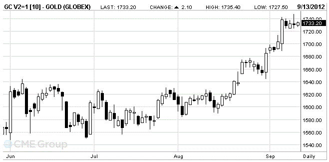 Стоимость октябрьского фьючерса на золото на COMEX составляет сейчас 1733.2 доллара за унцию.