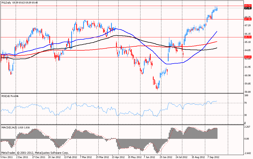 • Акции Procter&Gamble (PG) торгуются в области 4-х летнего максимума