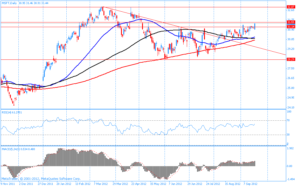 В данный момент акции MSFT торгуются по $31.41 (+1.06%). Сессионный максимум был установлен на уровне $31.46.