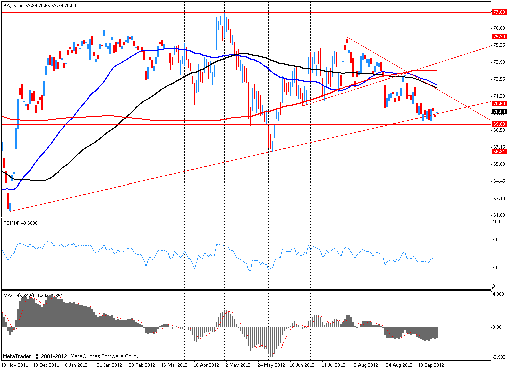 Акции BA на премаркете торгуются по $70.35 (+0.49%).