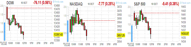 Давление на индексы оказывают опасения инвесторов относительно сезона отчетов, который неофициально вчера открыла компания Alcoa, представившая финансовые результаты деятельности за третий квартал.