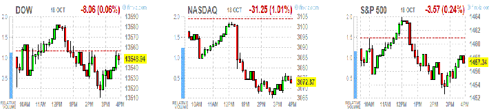 Американские фондовые индексы снизились после роста в первой половине торгов, так как не дотянувшие до прогнозных значения прибыли и продаж Google (GOOG) увели вниз показатели высокотехнологического сектора.