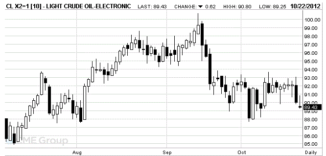 Стоимость ноябрьских фьючерсов на американскую легкую нефть марки WTI (Light Sweet Crude Oil) составляет 89,34 доллара за баррель на Нью-Йоркской товарной бирже.
