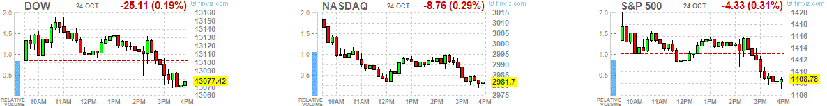 Индексы начали сессию ростом, однако не сумели удержать достигнутых уровней, и завершили сессию ниже нулевой отметки.