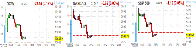 Компоненты индекса DOW демонстрируют смешанную динамику. Больше остальных упали в цене акции Boeing (BA, -2.19%). Выше остальных поднялись акции Procter & Gamble (PG, +3.03%) благодаря позитивному квартальному отчету, который компания представила до начала сегодняшних торгов.