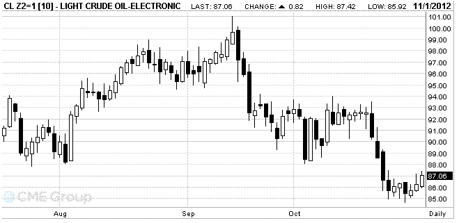 Стоимость декабрьских фьючерсов на американскую легкую нефть марки WTI (Light Sweet Crude Oil) выросла до 87,06 доллара за баррель на Нью-Йоркской товарной бирже.