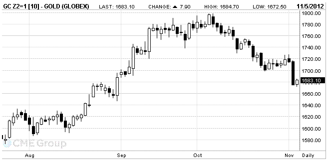 Стоимость декабрьского фьючерса на золото на COMEX сегодня выросла до 1683.30 доллара за унцию.
