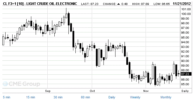 Стоимость январских фьючерсов на американскую легкую нефть марки WTI (Light Sweet Crude Oil) выросла до 87,23 доллара за баррель на Нью-Йоркской товарной бирже.