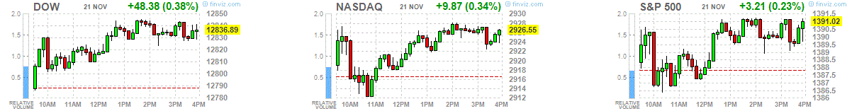 Рост индексов по прежнему сдерживает отсутствие прогресса в решение двух остальных вопросов, на которых, кроме обострения ситуации на Ближнем Востоке, сосредоточено внимание участников рынка, а именно: “фискальный обрыв” в США и выделение очередного транша финпомощи Греции.