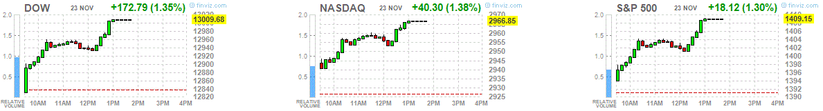 Напоминаем, что фондовые рынки США сегодня закрылись в 18:00 GMT. Также необходимо иметь ввиду, что, как правило, объемы торгов на сессии после Дня Благодарения являются одними из самых низких в году.