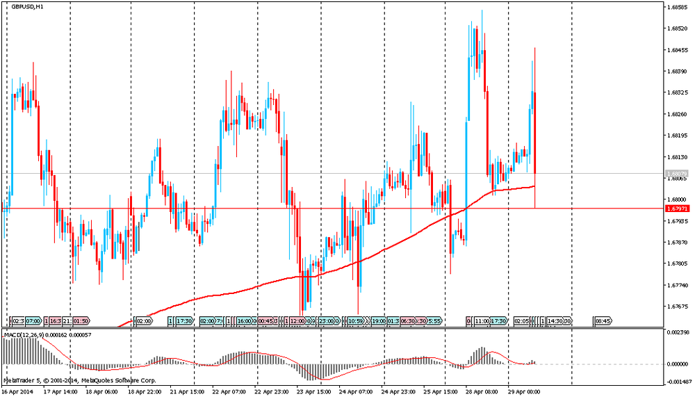 Фунт упал к $1.6797, обновив сессионный минимум после выхода данных ВВП Великобритании. Предварительные данные за первый квартал оказались выше предыдущего значения и составили +0.8%. Однако аналитики ожидали роста к +0.9%. Таким образом, данные не оправдали предварительных оценок экспертов, указав на не такой уж и сильный рост экономики региона.