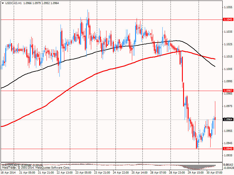 Пара USD/CAD резко выросла, установив при этом новый сессионный максимум, но не смогла удержаться, и вернулась до уровней открытия текущего часа. Такая динамика была вызвана выходом смешанных канадских данных. Сейчас пара находится на CAD1.0964