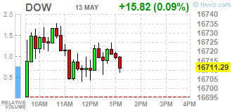 Компоненты индекса DOW торгуются преимущественно в минусе (21 из 30). Больше всех упали в цене акции International Business Machines Corp. (IBM, -1.52%). Лидируют акции Merck & Co. Inc. (MRK, +1.30%).