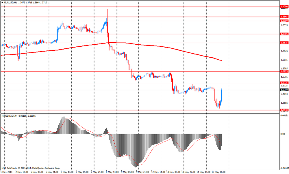 • Пара EUR/USD резко выросла, вернувшись в область открытия дня. В настоящий момент пара торгуется на отметке $1.3710