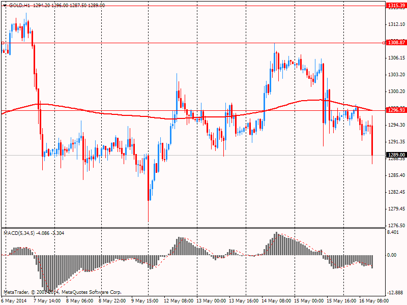 Цены на золото резко снизились после выхода оптимистичных данных по США, опустившись при этом ниже отметки $1290. Сейчас драгметалл торгуется на уровне $1289. Ближайшая цель - $1275 (минимум 2 мая)
