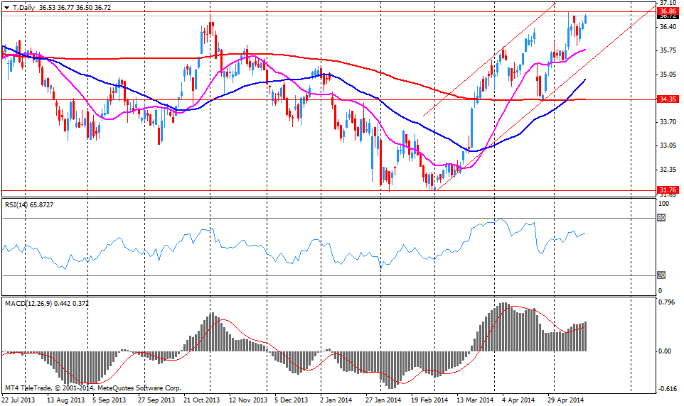 Акции T на премаркете торгуются по $35.85 (-2.42%).