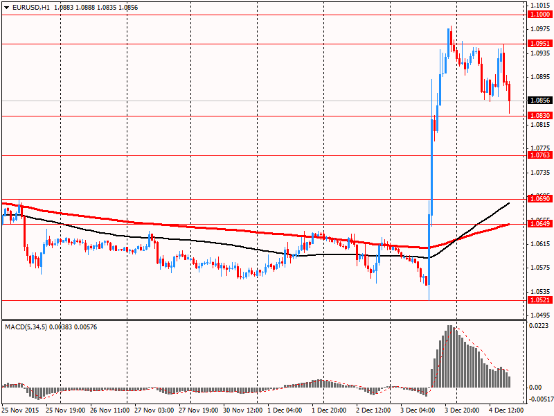 • Пара EUR/USD резко снизилась, обновив при этом минимум сессии, что было вызвано заявлениями главы ЕЦБ Марио Драги. Сейчас пара торгуется на $1.0856