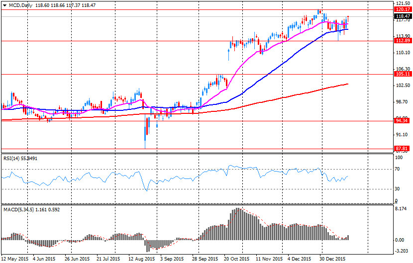 Согласно обнародованному отчету, прибыль компании McDonald's по итогам четвертого квартала 2015 финансового года достигла $1.31 в расчете на одну акцию (против $1.22 в четвертом квартале 2014 года), что оказалось выше среднего прогноза аналитиков на уровне $1.23.