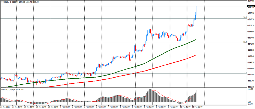 Цены на золото превысили отметку $1240, достигнув максимальных значений с февраля 2015 года. В настоящий момент драгметалл торгуется на уровне $1239.00