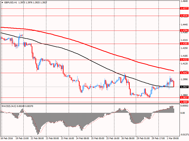 Доллар значительно укрепился против фунта, отыграв все ранее утраченные позиции, что связано с ожиданиями публикации данных по деловой активности в США. Сейчас пара GBP/USD торгуется на $1.3927. Важная поддержка - $1.3837 (минимум 29 февраля)