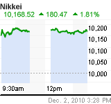 Nikkei 225 +180.47 +1.81% 10,168.52