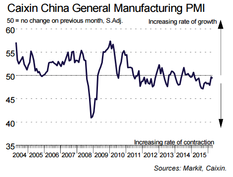 Индекс активности менеджеров по закупкам Caixin, публикуемый Markit Economics, представляет собой опережающий индикатор состояния производственного сектора Китая. Значение выше 50 указывает на рост, в то время как падение ниже данного уровня сигнализирует о падении активности. Поскольку экономка Китая является одной из крупнейших в мире, данный индикатор может оказывать сильное влияние на рынок .