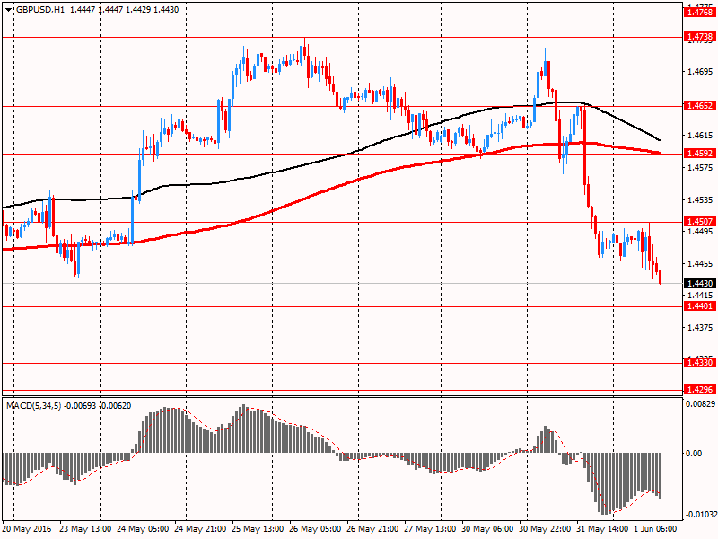 Фунт умеренно снизился против доллара, достигнув двухнедельного минимума, что было связано с публикацией итогов последних опросов общественного мнения на тему референдума. Опрос показал, что разница между количеством сторонников и противников Брекзита сократилась, но количество тех, кто выступает за выход из ЕС, лидирует, хотя и незначительно. Между тем, сегодня ОЭСР отметила, что риски, сопряженные с референдумом, являются главной угрозой для экономики. На фоне этого ОЭСР снизила прогноз по ВВП Британии на 2016 год с +2,1% до +1,7%.
