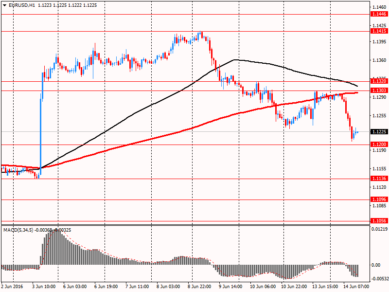 Евро существенно подешевел против доллара, обновив вчерашний минимум. Давление на валюту оказывает повышение риска выхода Британии из ЕС после референдума, запланированного на следующую неделю. Усиление беспокойств вокруг Брекзита также привело к падению доходности немецких облигаций до отрицательного значения, что фиксируется впервые за всю историю. Снижение евро также связано с ожиданиями оглашения итогов заседания ФРС. Хотя шансов повышения ставки на июньском заседании практически нет, обновленные экономические прогнозы, а также комментарии главы ФРС Йеллен могут оказать существенное влияние на рынки и заставить инвесторов пересмотреть прогнозы относительно дальнейшего ужесточения денежно-кредитной политики. Сейчас фьючерсы на ставки ФРС указывают, что вероятность повышения ставки в июне составляет 2%. Шансы на увеличение ставки в июле оцениваются в 18%.