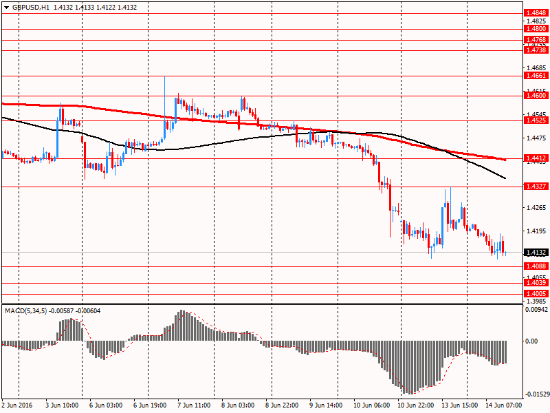 Фунт отступил от минимума сессии против доллара, чему способствовали новости о том, что в преддверии референдума Банк Англии начал проводить операции по вливанию ликвидности. Сегодня в рамках долгосрочной операции репо ЦБ разместил 2.455 млрд. фунтов. Однако, спрос со стороны банков оказался самым низким с февраля. В целом, пара GBP/USD остается под сильным давлением на фоне неопределенности по поводу итогов референдума. Сразу 4 из последних опросов общественного мнения показали, что число сторонников выхода Британии из ЕС превышает количество желающих остаться в блоке. По данным опроса Sunday Times и YouGov, 46% опрошенных поддерживают выход страны из ЕС, в то время как 39% хотели бы остаться. На прошлой неделе опрос Sunday Times / YouGov показал, что 42% респондентов поддержали выход из ЕС, в то время как 43% готовы остаться.