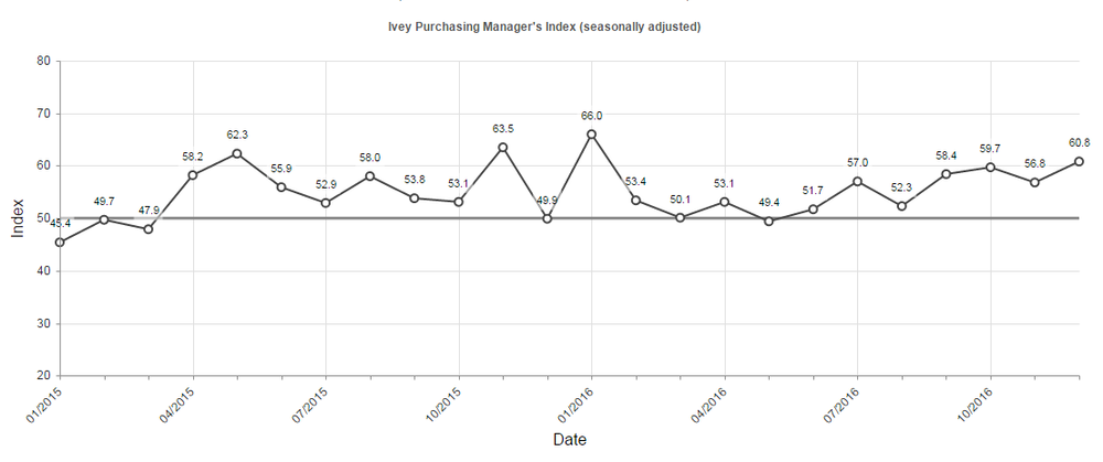 Результаты исследований, представленные Ассоциацией менеджеров по закупкам Канады и Школой бизнеса Ричарда Айви, показали: индекс деловой активности менеджеров улучшился по итогам декабря.