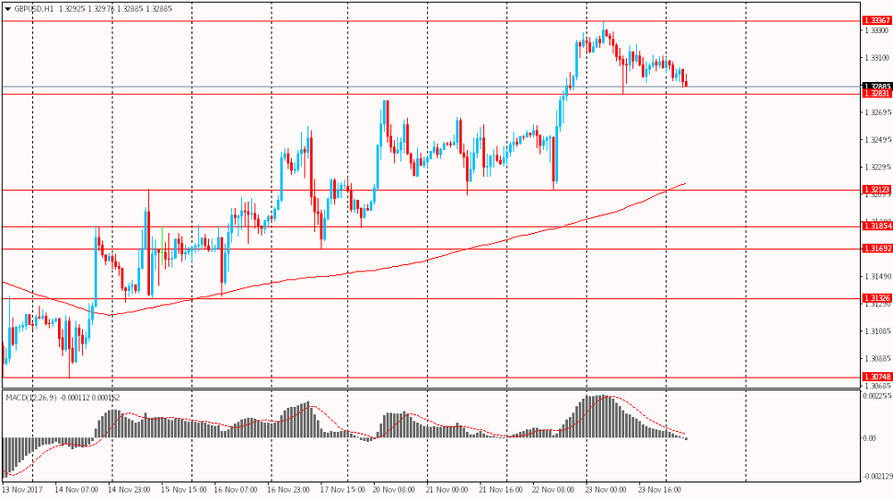 GBP/USD: в ходе азиатской сессии пара снизилась к $1.3285. Фунт уже второй день корректируется после роста 22 ноября. Глобально с октября пара находится в боковике $1.3030- $1.3330 и в данной момент подошла к сопротивлению. В этой ситуации наиболее уместным будет присматриваться к продажам пары от этого верхнего уровня границы диапазона. Однако, в случае закрепления пары выше $1.3330, необходимо закрывать продажи и начинать наращивать покупки. Ближайшей поддержкой выступает уровень $1.3285 (минимум 23 ноября)