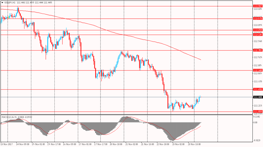 USD/JPY: в ходе торгов азиатской сессии пара выросла к Y111.50. Пара продолжает вчерашнюю коррекцию и пытается восстановится после многодневного снижения. В целом USD/JPY находится в рамках общего нисходящего тренда от 6 ноября. В данной ситуации наиболее уместным будет продолжать открывать продажи на окончание коррекции. Ближайшим сопротивлением выступает уровень Y111.65 (максимум американской сессии 22 ноября)