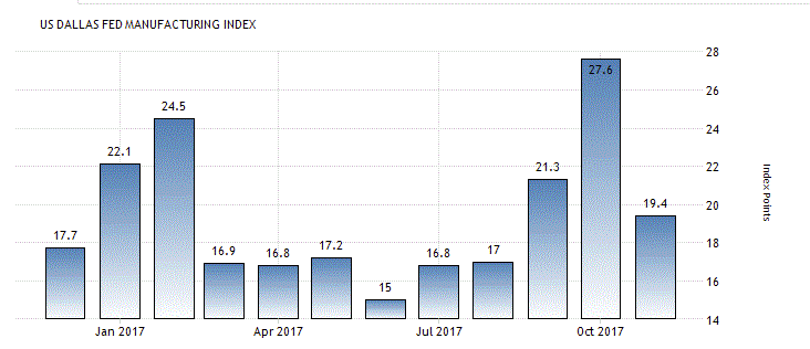 Данные, предоставленные Федеральным резервным банком Далласа, показали, что в ноябре деловая активность производителей Техаса сильно ухудшилась, и оказалась ниже прогнозов экспертов.